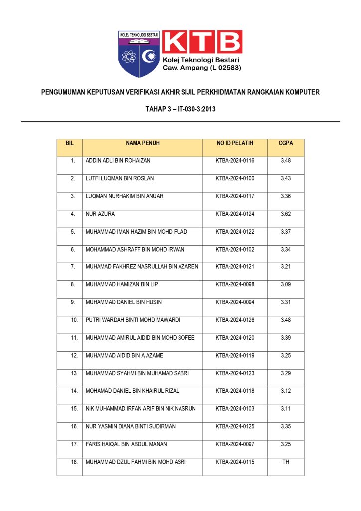PENGUMUMAN KEPUTUSAN VERIFIKASI AKHIR PELATIH